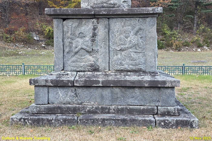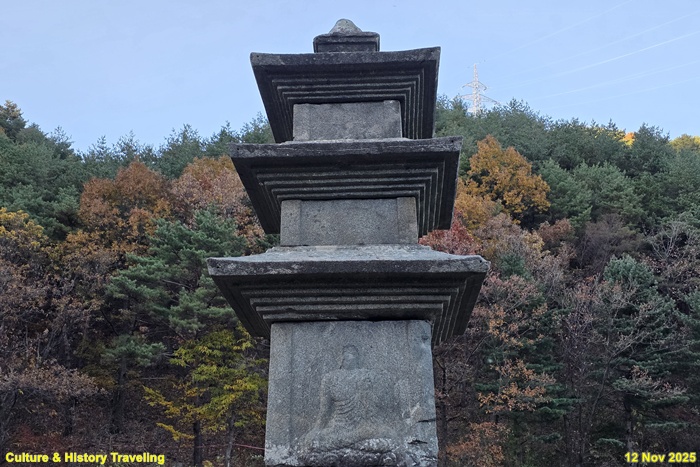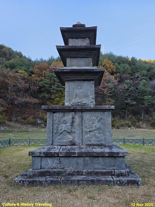 강원도 양양군 경현면 둔전리 진전사 절터에 남아 있는 <양양 진전사지 삼층석탑(국보)이다. 2층 기단 위에 3층 탑신을 올려 놓은 전형적인 통일신라 삼층석탑의 외형을 하고 있다. 탑의 기단부 2층 몸돌에는 팔부중상을, 탑신 1층 몸돌에는 여래좌상을 새겨져 있다. 전체적으로 기단부와 탑신의 비례가 안정감 있게 구성되어 있으며, 각면에 새겨진 조각상들의 조각수법이 세련되게 잘 만들어졌다. 기단과 탑신 몸돌에 부조상이 새겨진 형태의 통일신라 삼층석탑을 대표하는 석탑으로 평가받고 있다. 진전사는 통일신라 시대에 도의선사가 선종(참선을 중요시하는 불교 종파)을 처음 들여와 널리 알린 곳으로 역사적 의미가 깊은 사찰이다.