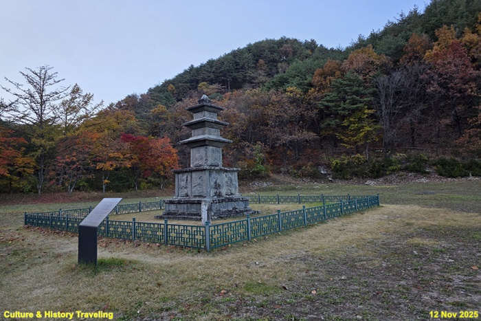 높이 약 5m의 이 탑은 2층 기단 위에 3층 탑신을 올려 놓은 전형적인 통일신라 삼층석탑이다. 전체적인 균형이 잘 잡혀 있어 안정감을 주고 있다.