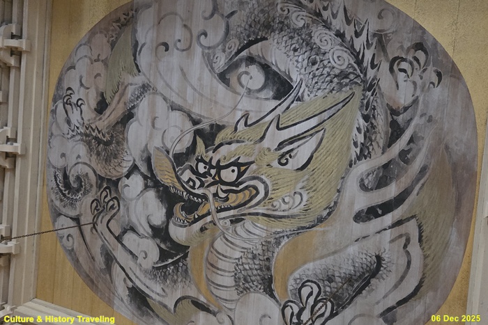 천장의 백룡도(白龍図)는 일본의 유명 화가 마에다 세이손(前田青邨)의 감수 아래 모리타 샤쿠오(守屋多仲)가 그린 그림이다.