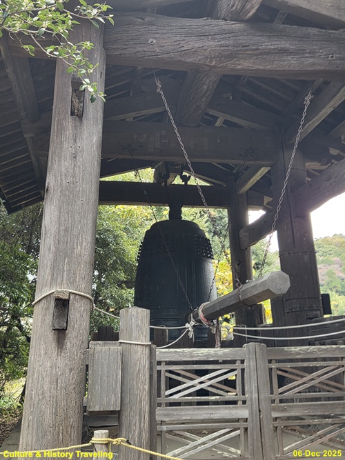 집권자 호조 사다토키(토키무네의 아들)가 7일 밤낮 동안 에노시마 변재천(벤자이텐)에서 머물며 천하태평과 만민의 안락을 기원하던 중, 신령스러운 꿈을 꾸고 큰 종을 주조하여(쇼안 3년, 1301년) 이 절에 봉납했습니다. 이와 함께 변재당을 건립하고 변재천을 모셔 이 절의 수호신으로 삼았습니다. 이후 영험함이 뚜렷하여 기원을 하면 반드시 응답을 받는다고 전해져 왔습니다. 또한, 이곳은 조망이 뛰어나 멀리 후지산을 바라볼 수 있어 많은 이들의 찬사를 받아왔습니다. (안내문, 엔카쿠지, 2025년)
