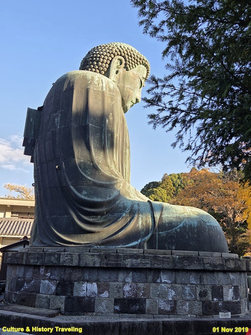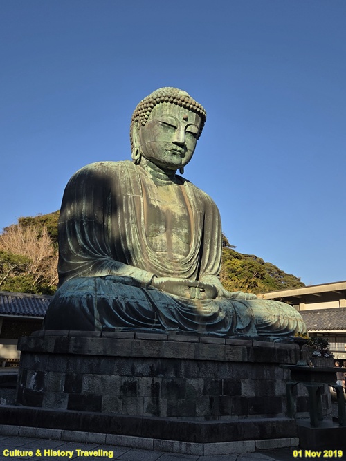 일본 가마쿠라 고토쿠인(高徳院)에 있는 대불(국보)이다. 가마쿠라 시대를 대표하는 불상으로 아마타여래를 표현한 청동좌상이다. 높이는 약 11.3m, 무게는 약 121톤에 달하는 거대한 불상이다. 원래는 큰 불전에 모셔져 있었으나 14~15세기 태풍과 쓰나미로 건물이 유실된 이후 지금처럼 노천에 모셔져 있다. 우리나라 속리산 법주사에 있었던 청동미륵보살입상과 비슷한 사례이다. 외형상 온화하고 안정된 가마쿠라 시대 불상 양식이 잘 반영되어 있다. 기술적으로 불상을 도금할 수는 없었고 표면에 금박을 붙였던 흔적이 남아 있다과 한다. 내부는 비어있어 들어가 볼 수 있다고 한다. 아래에는 연화대좌를 구성했던 꽃잎모양의 구성품을 볼 수 있다. 일본에서 도다이지 대불에 이어 2번째로 큰 불상이라 한다.