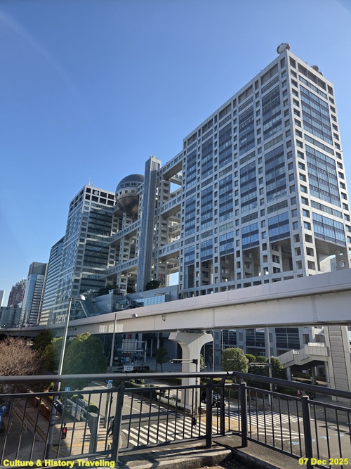 오다이바를 상징하는 대표적인 건축물인 <후지 TV 본사 빌딩(Fuji TV Headquarters)>이다. 일본의 유명 건축가 단게 겐조(Tange Kenzo)가 설계한 이 건물은 격자형 구조와 중앙의 거대한 구체가 특징이다.