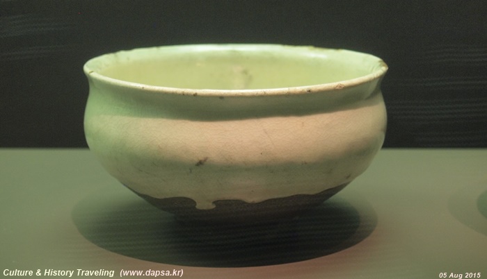 분장기법은 백토를 탄 물에 그릇을 담갔다가 꺼내어 유약을 바른 것이다. 대개 손으로 굽다리를 잡고 거꾸로 담가 자연스럽게 흘러내린 백토 자국이 남는다. 주로 굽 언저리에는 백토가 묻지 않아 회흑색을 띠는 바탕흙과 대비를 이루게 된다. <출처:중앙박물관>