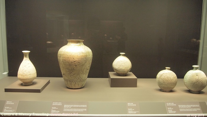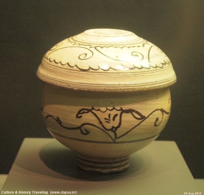 당당함과 풍만함이 돋보이는 항아리이다. 백토를 두껍게 입힌 후 잎이 무성하게 벌어진 모란과 넝쿨무늬를 거침없이 그려 넣었다. 고려시대의 장식적이도 정교한 모란 넝쿨무늬에 비해 생동감과 호방감이 느껴진다. <출처:중앙박물관>