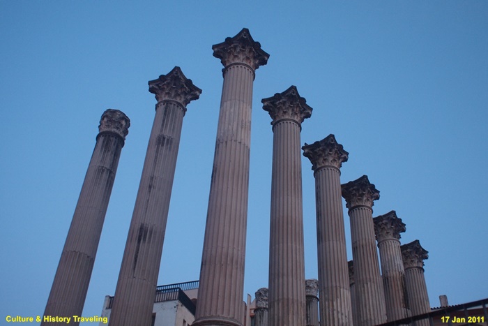 스페인 남부 안달라시아 지방 코르도바에 있는 ‘로마 신전(Templo Romano de Córdoba)’이다. 코르도바 시청 옆에 위치한 이 유적은 고대 로마 제국 시절 코르도바의 위상을 보여주는 가장 상징적인 유물 중 하나이다. 신전은 흰 대리석으로 건축되었으며 높은 기단 위에 세워졌다. 전면 파사드에는 여섯 개의 기둥이 있었고, 후면과 측면은 코린트식 반기둥으로 장식되어 있었다. 구조는 전면 계단, 현관(pronaos), 그리고 신성한 방(cella)으로 이루어져 있었다. 신전 앞에는 종교 의식을 위한 제단이 세워져 있었다. 기원전 1세기 중반에 건설이 시작되어 1세기 말에 완공된 것으로 추정되고 있다.
