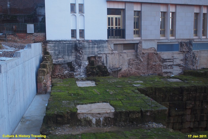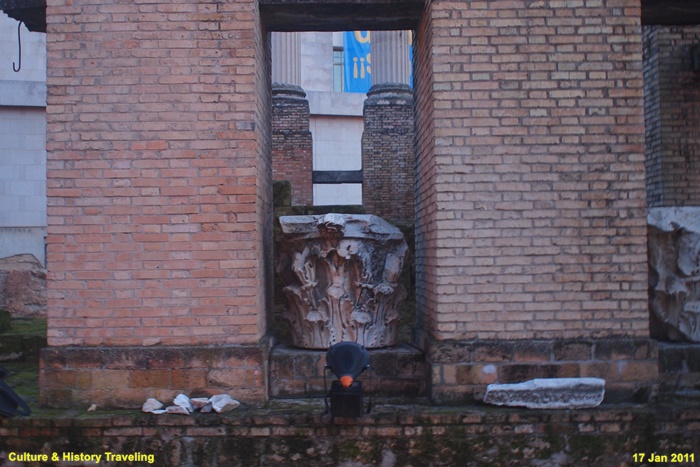 이 유적은 1951년 시청 확장 공사 중에 로마 시대 기둥 , 기둥 머리 , 주두 등이 발견 되어 공사가 중단되었다. 이후 발견된 일부 구조물로 현관의 1개 기둥과, 셀라 북쪽 첫번째 기중을 개건했다. 1980년대 이후 발굴조사 결과 신전의 구조와 규모 등이 확인되었으며 주변에 로마시대 포럼을 구성했던 시설물들의 흔적도 발견되었다고 한다.