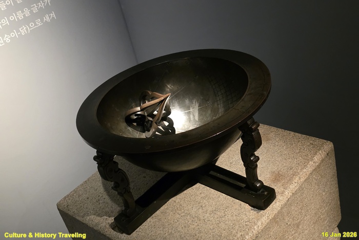 조선시대에는 다양한 종류의 해시계가 만들어졌습니다. 해시계는 해그림자로 해의 위치를 파악하고 운행 주기를 측정함으로써 시간을 알 수 있는 장치입니다. 앙부일구는 오목하게 생긴 해시계로, 1434년(세종 16)에 처음 만들어져 조선 후기까지 가장 널리 활용되었습니다. 조선 후기에는 서양 천문학이 전해지면서 다양한 작도법에 따라 편평한 모양의 평면 해시계도 만들어졌습니다. (안내문, 고궁박물관, 2025년)