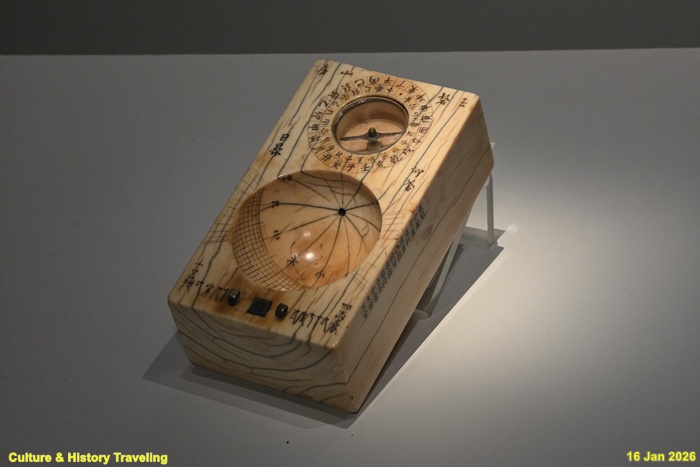 1881년(고종 18) 강윤이 만든 휴대용 앙부일구다. 위에는 나침반을 두어 방향을 맞출 수 있게 했고, 아래에는 영침 그림자가 가리키는 위치로 시간을 읽을 수 있게 했다. 몸체 앞면에는 한양의 북극고도가, 뒷면에는 제작자와 제작 시기가 적혀 있다. (안내문, 고궁박물관, 2025년)