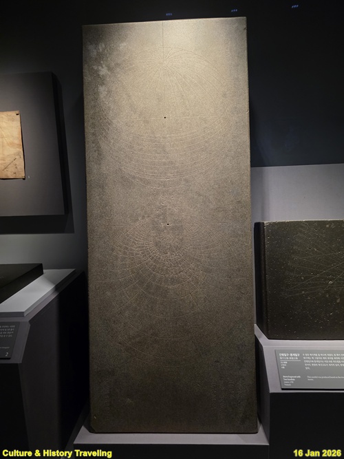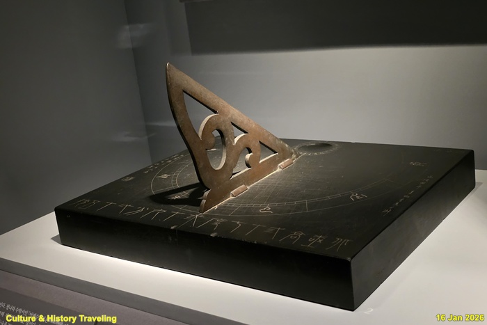 조선 후기에는 솥 모양의 앙부일구와 달리 해 그림자가 생기는 면이 편평한 평면 해시계가 만들어졌습니다. 평면 해시계는 청나라에서 선교사 아담 샬 등이 고안하고 이천경이 만든 것을 소현세자가 1645년에 조선에 처음 들여왔습니다. 이후 한양의 위치에 맞춰 계절선과 시각선을 수정해 다시 만들었습니다. 또한 해가 하늘에 지나가는 길을 평면에 표현하는 여러 방법을 적용하여 다양한 종류의 평면 해시계를 만들었습니다. (안내문, 고궁박물관, 2026년)