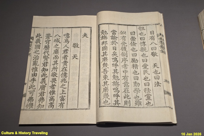 후대 왕이 경계해야 할 8개 항목을 담고 있다. 그중에서도 영조는 ‘하늘을 공경하라(敬天)’와 ‘백성을 사랑하라(愛民)’를 강조했다. ‘경천’의 내용은 국왕의 통치가 하늘의 뜻에 의한 것이며, 그 뜻은 곧 ‘애민’에 있음을 가리킨 것이다. 천문은 하늘의 뜻을 살피는 방편으로 여겨 중요시되었다. (안내문, 고궁박물관, 2026년)
