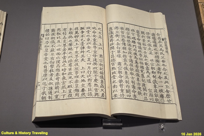 명나라 호광이 유교 경전 중 하나인 《서경》을 해설한 책이다. 《서경》은 중국 고대 제왕의 통치 기록으로, 정치 천문 · 지리 · 민생과 관련된 다양한 내용을 담고 있다. 이 중 순 임금이 “선기옥형(혼천의)을 살펴 해·달 · 오행성의 운행을 파악했다”는 기록이 있다. 이는 유교 정치이념에서 하늘을 살피는 일을 통치자의 주요 임무로 보는 근거가 되었다. (안내문, 고궁박물관, 2026년)