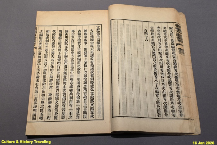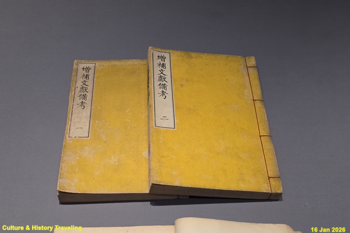 삼국시대 이후 조선까지 정치, 경제, 문화 등 국가 통치에 중요한 제도와 문물을 16개 분야로 나누어 정리한 책이다. 1770년(영조 46)에 편찬한 《동국문헌비고》, 이를 보완해 1782년(정조 6)에 편찬한 《증정 동국문헌비고》를 수정 보완하여 1908년에 편찬하였다. 《동국문헌비고》에서부터 천문, 역법과 관련된 내용을 정리한 <상위고(象緯考)>를 목차의 첫 번째로 배치하여 중요성을 강조하였다. (안내문, 고궁박물관, 2026년)