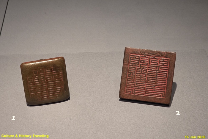 조선시대 천문 및 역법을 담당한 관청인 관상감 인장과, 관상감 책임자인 관상감 영사의 인장이다. 영사는 관상감 직급 가운데 가장 높은 지위로 조정 최고 관직자인 영의정이 겸직했다. (안내문, 고궁박물관, 2026년)