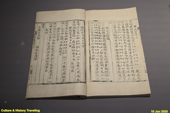 하늘의 여러 현상, 특히 천체의 움직임을 관측하는 것은 연, 월, 일, 절기 등 시간의 질서를 얻기 위함이었습니다. 천체의 움직임을 계산해 날짜를 정하는 수학적 이론이 역법, 역법을 적용해 해마다 만드는 달력이 역서입니다. 역법을 연구하고 역서를 편찬하는 것은 백성에게 하늘의 뜻을 펼쳐 보이는 것이었습니다. 농경을 중심으로 하는 조선 사회에서는 때에 맞춰 농사를 짓는 것이 중요하였으므로, 국왕은 천체의 움직임을 통해 절기를 파악하고 백성에게 이를 알려 농업에 힘쓰도록 힘을 기울였습니다. 관상감에서는 매년 역서를 편찬해 국왕에게 올리고, 관료들과 각 관청에 나누어 주었습니다. 조선은 기본적으로 중국에서 정한 역법을 따랐지만, 《칠정산七政算》의 편찬 등 자체적으로 역을 계산하고 역서를 편찬할 수 있는 기술을 확보하기 위한 연구를 계속하였습니다. 또한 한양을 중심으로 한 천체 관측 값에 따른 시각의 차이를 보정해 실제 생활에서 활용하도록 했습니다. (안내문, 고궁박물관, 2026년)