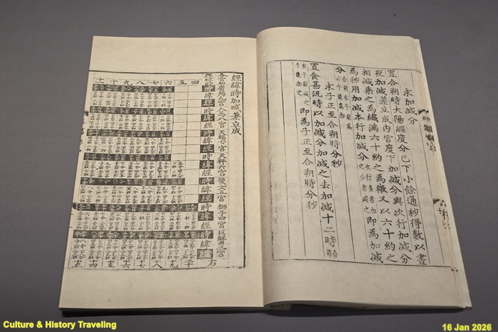 시헌력을 적용하여 기유년 날마다 해와 달, 토성, 목성, 화성, 금성, 수성의 위치를 계산하고 표로 정리한 책이다. 기유년은 1789년(정조 13)으로 추정된다. (안내문, 고궁박물관 2026년)