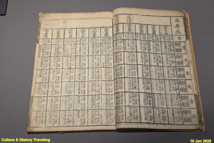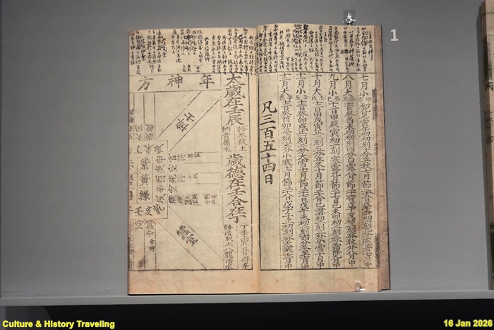 조선시대 왕실에서 사용한 역서이다. 구성은 일반적 역서와 동일하나 날짜별로 ‘좋은 일과 안 좋은 일’을 적을 때 왕실에 해당하는 내용을 ‘上상’ 으로 표기해 따로 적은 것이 특징이다. (안내문, 고궁박물관, 2026년)