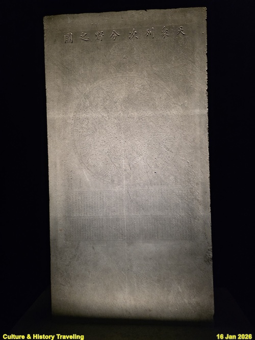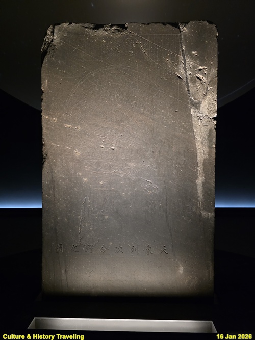 <천상열차분야지도 각석(天象列次分野之圖刻石)>은 하늘을 여러 구역으로 나누어 배열해 놓은 천문도로 돌에 새겨 만들었습니다. 태조 즉위 초인 1395년(태조 4)에 조선 건국 이전부터 전해지던 천문도 각석의 탁본을 구해 별자리 위치를 보정한 후 완성했습니다. 이를 통해 천문을 살피고 시간의 흐름을 파악해 백성에게 알리는 관상수시(觀象授時)의 의무를 실현하고, 조선 건국의 정당성을 드러내려 했습니다. 천문도에는 1,467개의 별과 295개의 별자리가 새겨져 있습니다. 중심원에는 1년 내내 볼 수 있는 별자리가, 바깥에는 계절에 따라 바뀌는 별자리가 새겨져 있고 별의 크기와 깊이를 다르게 표현해 밝기 차이를 나타냈습니다. 천문도와 더불어 제작에 참여한 사람들, 해와 달, 별에 대한 이론 등이 적혀있습니다. 세월의 흐름에 따라 표면이 닳아 1687년(숙종 13)에 다른 돌에 옮겨 새겼으며, 각석 두 점이 모두 전하고 있습니다. (안내문, 고궁박물관, 2025년)