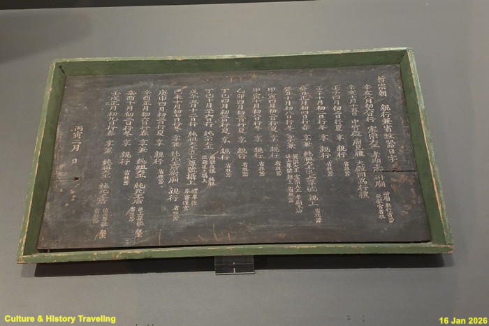 1866년(고종 3) 2월, 철종(재위 1849~1863)이 직접 종묘제향과 성생기를 거행한 날짜를 기록한 현판이다. 1851년(철종 2)부터 1862년(철종 13)까지 총 17차례의 친향과 성생기 날짜가 기록되어 있다. 성생기는 종묘제향 전에 제사에 올릴 가축[과 제기를 살피는 의식이다. 본래 왕이 참여하지 않다가 1739년(영조 15)에 국왕이 친히 살피는 의례가 만들어졌고, 이후로 그 날짜를 현판에 기록으로 남겼다. (안내문, 고궁박물관, 2026년)