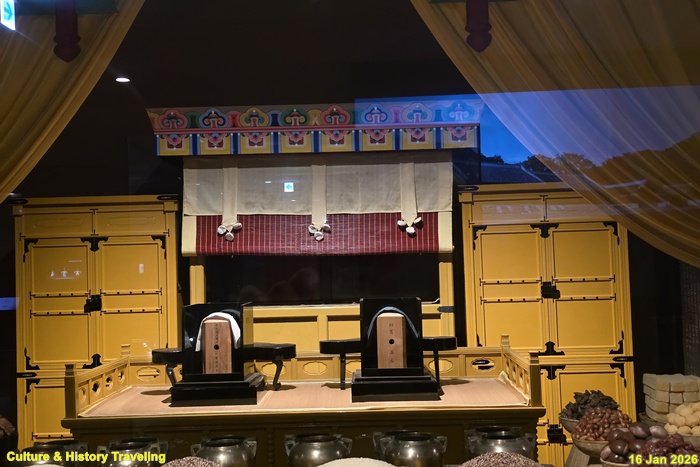 ‘효孝’는 성리학적 이상 국가를 실현하기 위해 국왕이 지녀야 할 가장 기본적인 덕목으로 왕과 왕실 가족의 죽음과 관련한 의례, 조상을 섬기는 제례에서 잘 나타난다. 통치자의 죽음이자 부모의 죽음인 국상(國喪)은 나라의 가장 큰 슬픔으로 여겨졌다. 엄격한 절차와 장중한 분위기에서 치렀으며 어떤 의례보다 오랜 기간 동안 거행했다. 선왕들의 신주를 모신 종묘에서 지내는 제사는 국가 제사 중 규모가 가장 크고 중요한 의례였으며, 왕릉에서도 정성을 다해 제사를 치러 조상에 대한 효를 다했다. (안내문, 고궁박물관, 2026년)