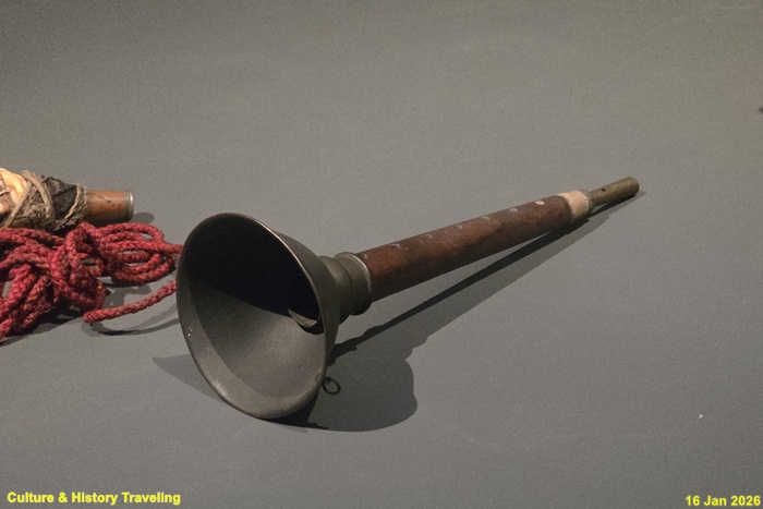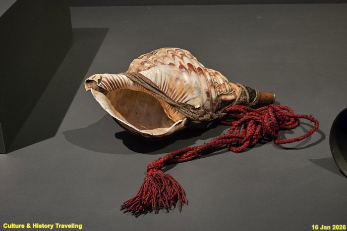 소라의 꼭지 부분에 구멍을 내어 만든 관악기이다. 한 가지 음을 낼 수 있는데 음 높이는 소라의 크기에 따라 달라진다. 조선 후기에는 왕의 행차 때 음악을 연주하던 악대인 내취內吹에 편성되었다. (안내문, 고궁박물관, 2026년)