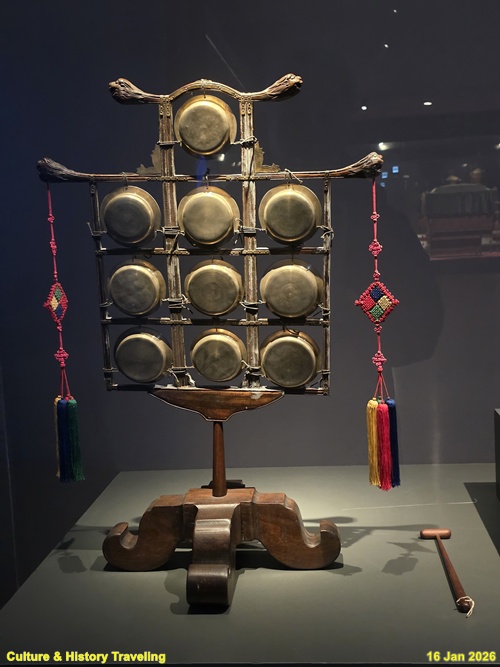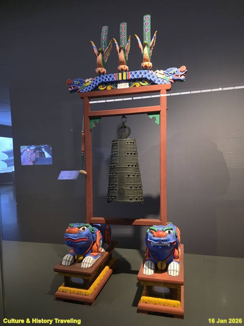 큰 종 한 개를 나무틀에 매달아 만든 타악기이다. 종의 아랫부분 가운데에 둥글게 튀어나온 부분을 망치 모양의 채로 쳐서 소리 낸다. (안내문, 고궁박물관, 2026년)