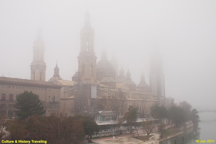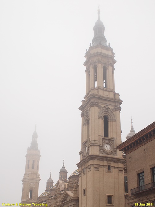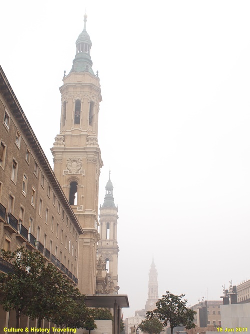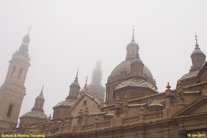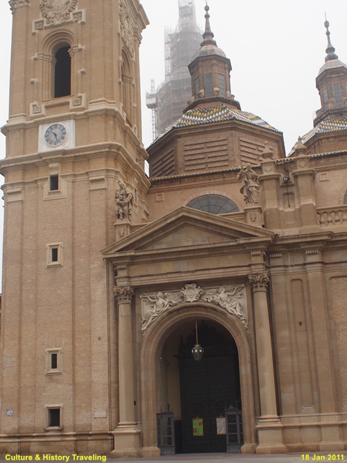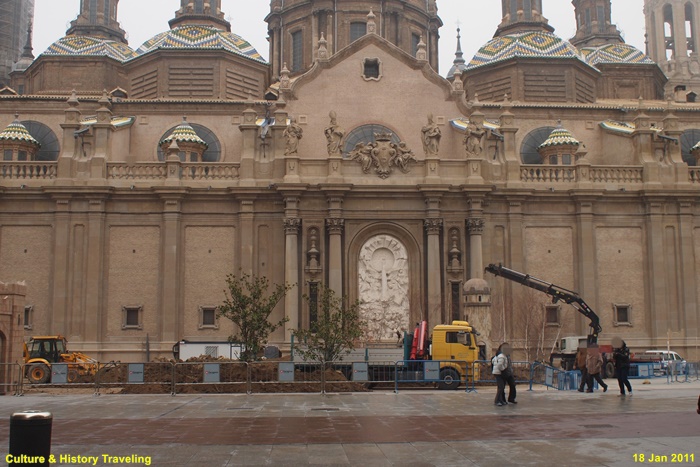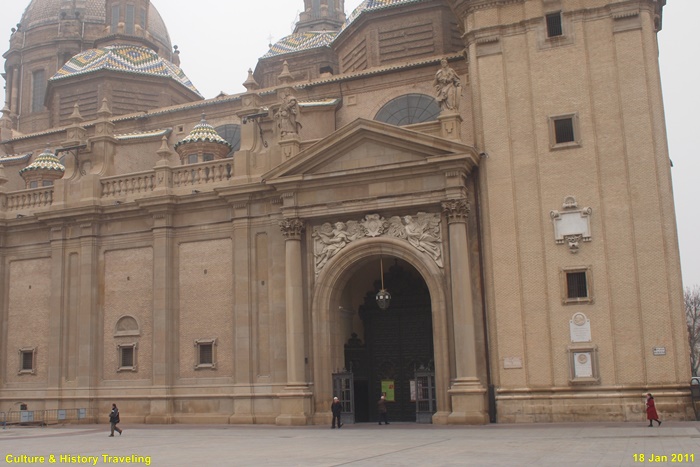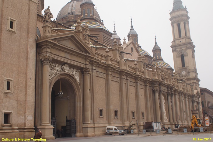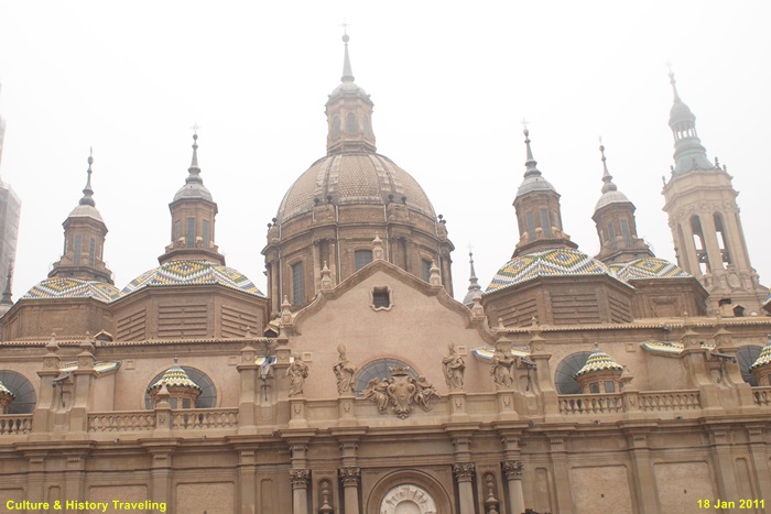 17~18세기에 걸쳐 완성된 스페인 바로크 건축의 대표작으로, 장식적이고 웅장한 외관이 특징이다. 직사각형에 가까운 평면 위에 넓게 펼쳐진 구조로, 내부 공간이 매우 넓고 개방감이 크다. 11개의 돔과 4개의 높은 탑이 어우러진 웅장한 실루엣을 자랑합니다. 돔 외부는 파랑·초록·노랑·흰색 타일로 장식되어 시각적으로 화려하다. 돔과 종탑의 형태, 에브로강을 건너는 다리 등으로 볼 때 이슬람의 중심지였던 코르도바 메스키타를 의식했던 것으로 보인다.
