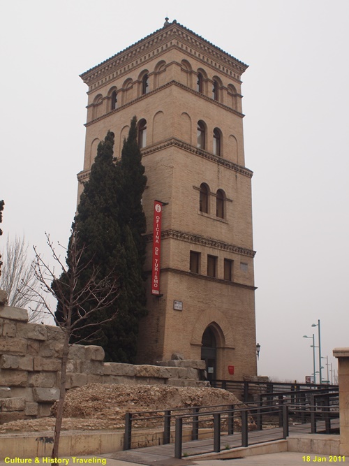 교회 옆에는 광장 쪽으로 약간 기울어진 팔각형 벽돌탑이 있다. 16 세기 에 지어진 이 탑 은 가장 먼저 건설된 건축물 중 하나입니다. 아라곤 무데하르 양식 에 르네상스 양식이 가미된 형태 이며 , 꼭대기에는 둥근 첨탑이 있다. 멀리서 봐도 한눈에 들어오는 기울어진 종탑이다.