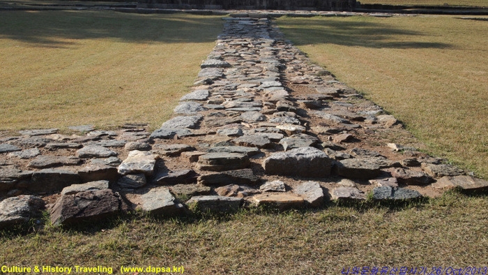 거친 자연석을 깔아 놓고 있다. 자연지형에 맞게 중간에 ‘ㄱ’자로 꺽여서 연결된다.